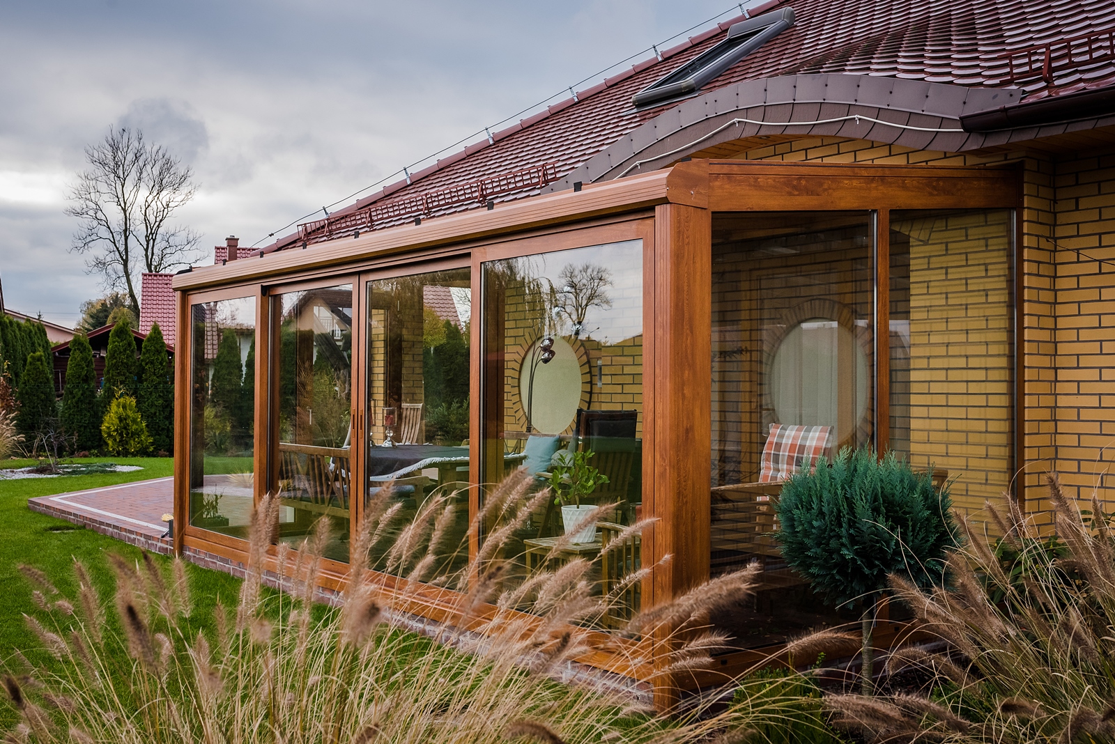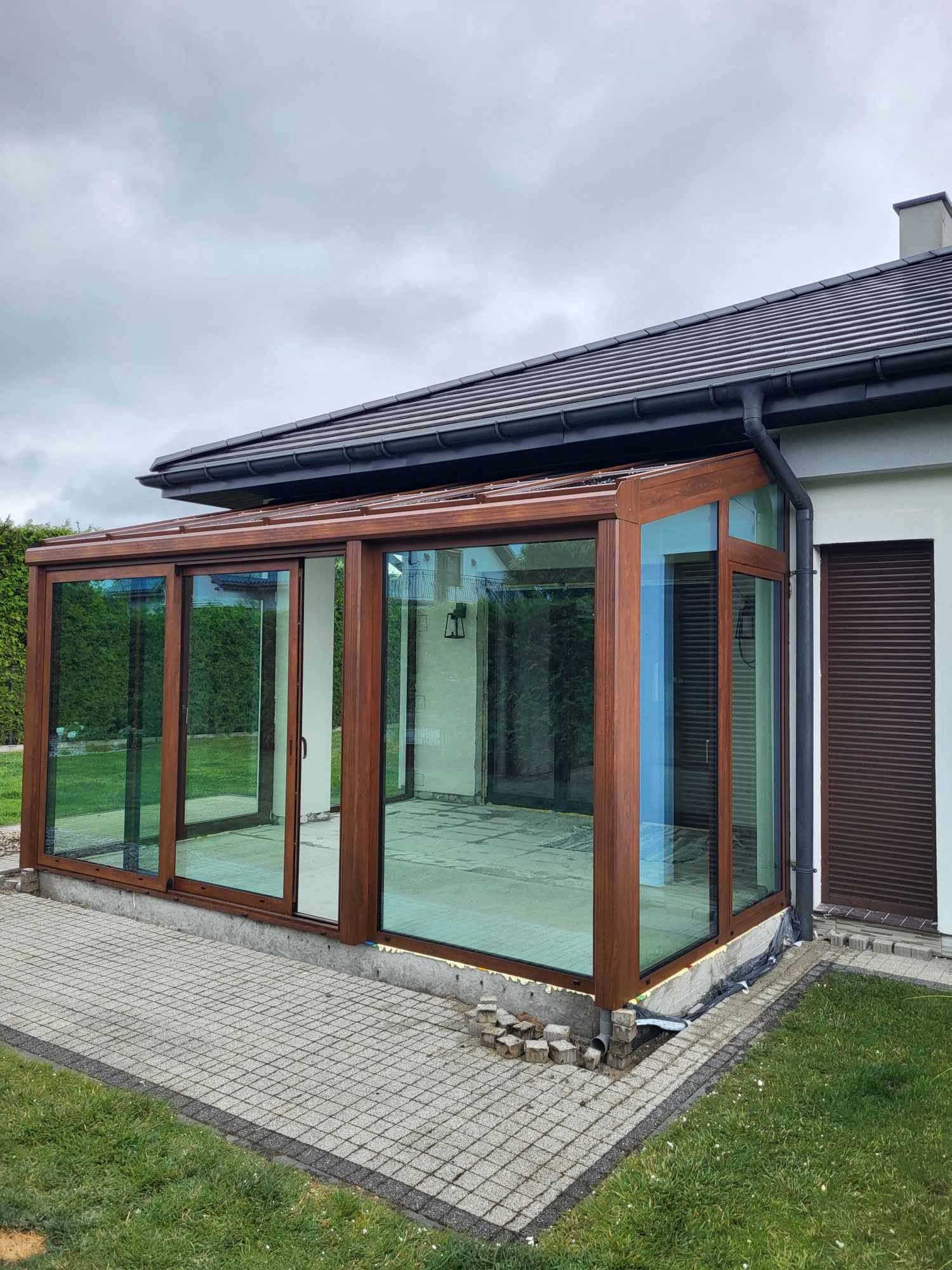W Chełmnie zrealizowaliśmy ogród zimowy w ciepłym, eleganckim kolorze orzecha,
