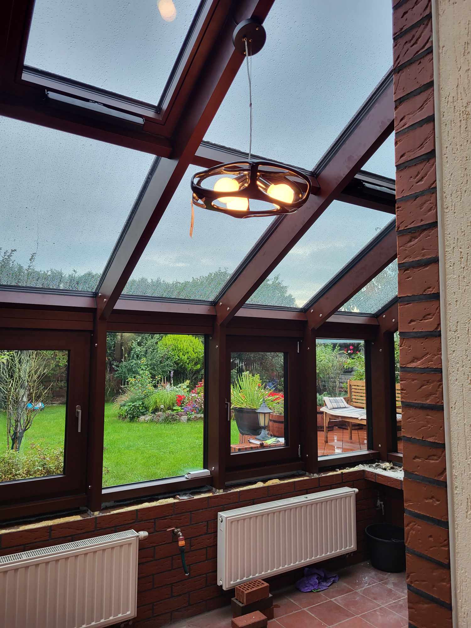 Inwestorom zależało, aby ogród zimowy był gotowy przed świętami — właśnie tutaj miała stanąć choinka ubierana wspólnie z wnukami.