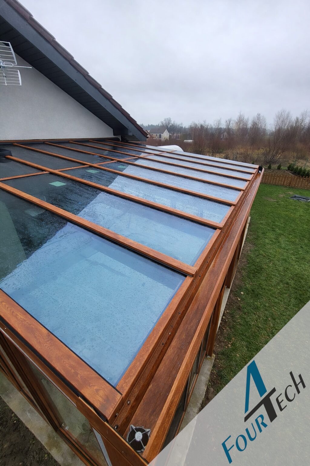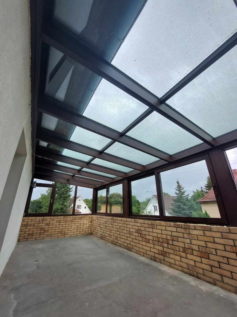 Konstrukcja została wykonana w pakiecie trzyszybowym, co zapewnia bardzo dobrą izolację termiczną oraz komfort użytkowania przez cały rok.
