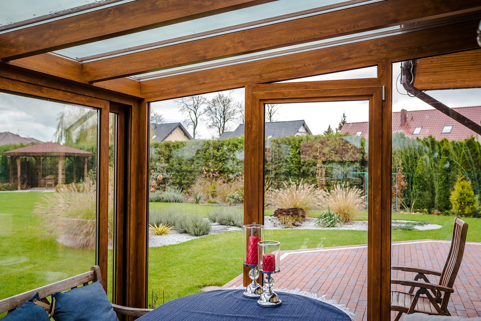 Zastosowany pakiet dwuszybowy skutecznie chroni przed wiatrem i opadami, tworząc przytulną,